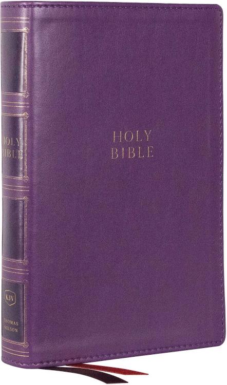 Enjoy the timeless and trusted King James Version in a classic design. This hand-sized edition places over 43,000 cross-references between the two columns of Scripture text. The traditional format utilizes Thomas Nelson’s exclusive KJV Comfort Print(R) typeface, making it the small Bible that has everything you need to take along with you.Features include:Over 43,000 cross-references allow you to find related passages quickly and easilyConcise concordance lets you look up a word’s occurrences throughout the BibleFull-color maps Flexible and strong Smyth-sewn bindingSatin ribbon markersClear and readable 8-point KJV Comfort Print