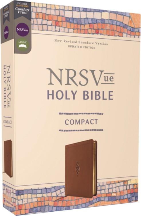 The perfect on-the-go Bible. With an easy-to-read typeface and a slim size, the NRSVue Holy Bible, Compact invites you to explore the depth and beauty of Scripture anywhere and at any time. It elegantly unites the portability you’d expect in a compact bible with a beautiful and readable typeface.Skillfully crafted for the New Revised Standard Version, Updated Edition (NRSVue) text, Zondervan’s exclusive Comfort Print(R) typeface provides a smooth reading experience that complements the foremost Bible translation vetted by Protestant, Catholic, Orthodox, Evangelical, and Jewish scholars. Continuing the legacy of the NRSV, the NRSVue aims to faithfully serve the church in personal spiritual formation, in the liturgy, and in the academy. With revisions based on new textual evidence, historical insights, and linguistic precision, this updated edition delivers a translation of Scripture based on meticulous care for accuracy and readability.Features:The full text of the New Revised Standard Version, Updated Edition (66-book Protestant canon), vetted by an ecumenical pool of Christian academics and renowned for its beautiful balance of scholarship and readabilityPortable size – slightly larger than a 4×6 notecardElegant two-color page design in a double-column formPresentation pageSatin ribbon markerExclusive Zondervan NRSVue Comfort Print typeface