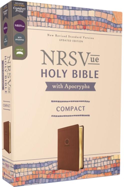 The perfect on-the-go Bible. With an easy-to-read typeface and a slim size, the NRSVue Holy Bible with Apocrypha, Compact invites you to explore the depth and beauty of Scripture anywhere and at any time. It elegantly unites the portability you’d expect in a compact Bible with a beautiful and readable typeface.The Apocrypha is placed between Old and New Testaments, a nearly four-hundred-year-old tradition originating with the 1534 German Luther Bible. This practice separates the Apocrypha from the 66-book canon while allowing readers to benefit from its spiritual wisdom, exemplary piety, and historical insight.Skillfully crafted for the New Revised Standard Version, Updated Edition (NRSVue) text, Zondervan’s exclusive Comfort Print(R) typeface provides a smooth reading experience that complements the foremost Bible translation vetted by Protestant, Catholic, Orthodox, Evangelical, and Jewish scholars. Continuing the legacy of the NRSV, the NRSVue aims to faithfully serve the church in personal spiritual formation, in the liturgy, and in the academy. With revisions based on new textual evidence, historical insights, and linguistic precision, this updated edition delivers a translation of Scripture based on meticulous care for accuracy and readability.Features:The full text of the New Revised Standard Version, Updated Edition, vetted by an ecumenical pool of Christian academics and renowned for its beautiful balance of scholarship and readabilityApocrypha between the Old and New TestamentsPortable size – slightly larger than a 4×6 notecardElegant two-color page design in a double-column formatPresentation pageSatin ribbon markerExclusive Zondervan NRSVue Comfort Print typeface