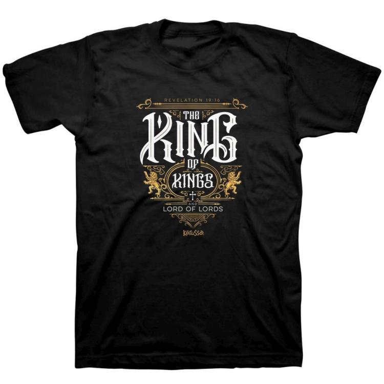 Pay tribute to Jesus in this The King T-Shirt in Black by Kerusso . Dancing lions and royal details surround a powerful message of faith: Jesus is the King of Kings and the Lord of Lords, supreme above all other rulers. We can honor God with our actions, with our words, and even in the way we dress.