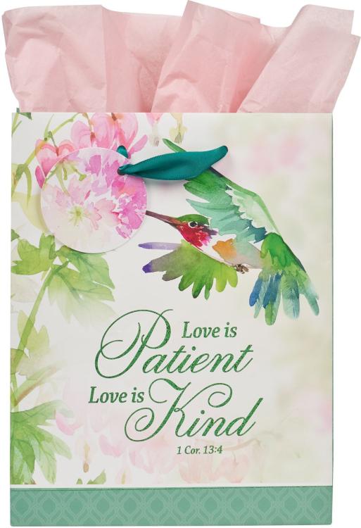 The Love is Patient Hummingbird Medium Gift Bag is more than just packaging; its design and message provide a perfect way to express your true feelings for a mother~ friend~ or loved one.