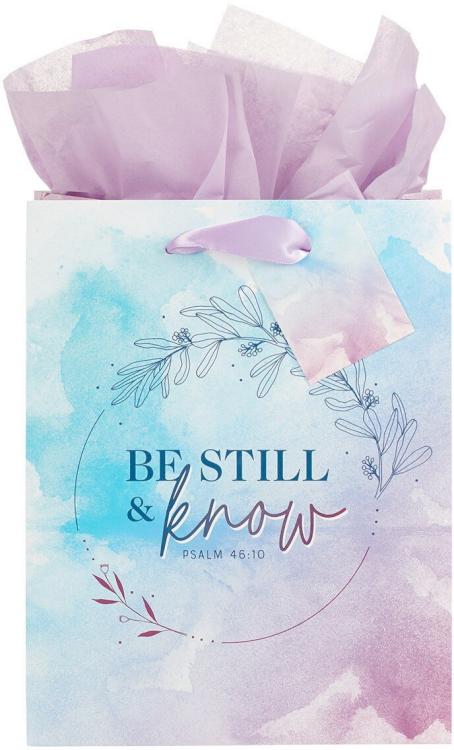 Wrap an encouraging gift in the Be Still & Know Lilac and Blue Watercolor Medium Gift Bag to show you care.