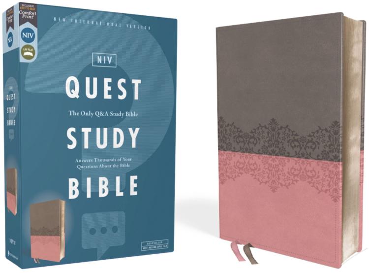 The Bestselling NIV Quest Study Bible Answers Thousands of Your Questions About the Bible. Get answers to the Bible questions you have… and questions you haven’t yet pondered! The NIV Quest Study Bible features over 7,000 notes written in an engaging question and answer format that give insight into the common, uncommon, and sometimes perplexing passages from the Bible. You will have the opportunity to consider questions like “Why did God send angels to Jacob?, What prevents God from hearing our prayers?, and Why does God test us?” as you explore God’s Word using the many study helps.The only question and answer Bible is now available with exclusive Zondervan NIV Comfort Print(R) for smooth reading. Expertly designed specifically to be used for the New International Version (NIV) text, Comfort Print offers an easier reading experience that complements the most widely read modern-English Bible translation. The original Quest Study Bible was conceived in 1989 when two publishing companies, Zondervan and Christianity Today International, worked together to develop a Bible that would answer the challenging questions that arose as people read Scripture. Focus groups around the United States evaluated the usefulness of potential study Bible features and helped select the features that would be included in this Bible. Then, more than 1,000 people received passages of Scripture and were asked, “What questions do you have about this portion of the Bible?” Their responses helped determine what kinds of questions the notes would answer, helping to create a resource that answers the questions that real people have asked about the Bible. Notes have been updated in subsequent releases to ensure that this Bible stays relevant and current to modern readers.Features:Complete text of the accurate, readable, and clear New International Version (NIV)Over 7,000 insightful notes arranged in a unique question and answer formatNearly 350 articles investigate the most asked questions about the BibleBook introductions that answer questions about each book, such as “Who wrote it?,” “Why?,” and “What should I look for?”Article index and expanded subject indexSingle-column Scripture text arranged in a modern, two-color page designOver 150 charts, timelines, and mapsA reading plan with three distinct tracks to followNIV Dictionary-Concordance16-page full-color map sectionTwo satin ribbon markersLeathersoft cover lies flat when openExclusive Zondervan NIV Comfort Print(R) typefacePr