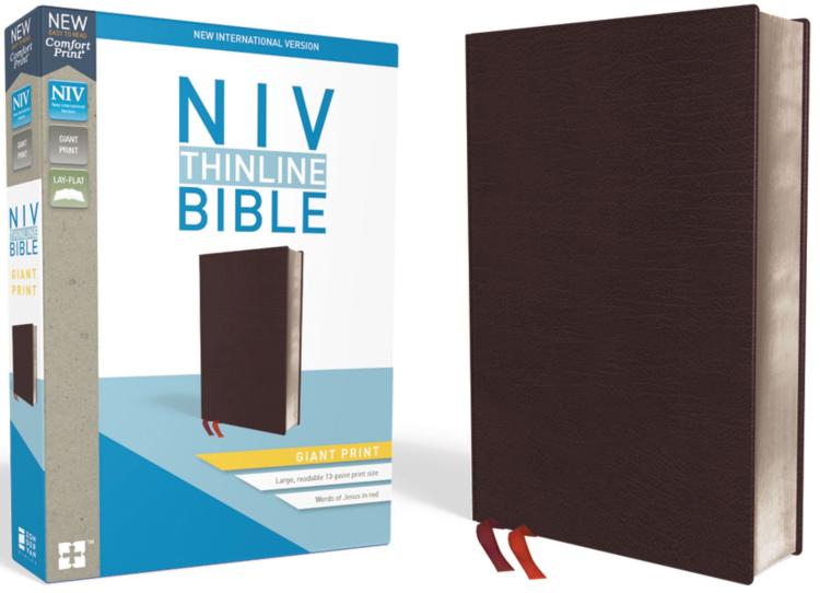 The NIV Thinline Bible, Giant Print captures the depth and beauty of the Bible, in a take-anywhere size. With a new custom typeface, this Bible delivers a more pleasant reading experience, making it even easier to understand God’s Word. Measuring less than an inch thick, it is perfect to take to work, travel, church, and Bible study for on the go access to God’s word. The full text of the accurate, readable, and clear New International Version (NIV) translation Clear, readable 14-point print size Less than one inch thick Words of Christ in red Double-column format Presentation page Ribbon marker