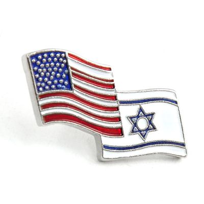 Dual flag lapel pin in brilliant colors and silvertone accents, makes a unique display and reminder to keep both countries in prayer. Secure post back pin.