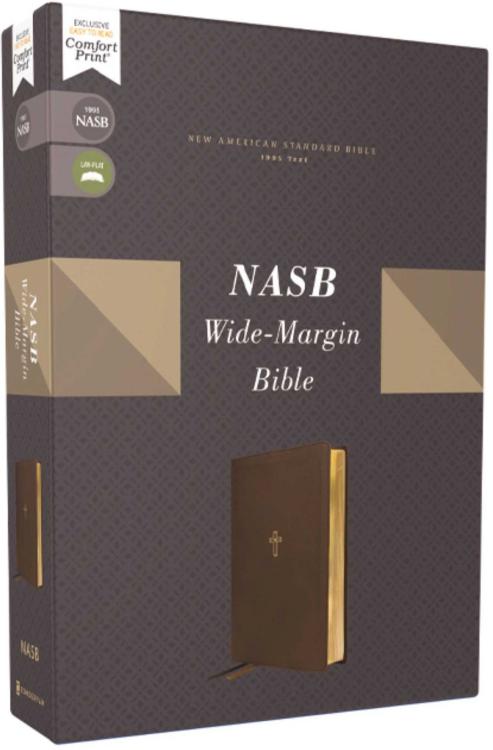 An NASB Bible beautifully laid out with wide margins ideal for taking notes.This NASB Wide Margin Bible features a beautiful two-color interior with substantial margins on both the inside and outside of the page, allowing you to record notes and deepen your reflection on and study of God’s Word.Universally recognized as the gold standard among word-for-word translations, the beloved New American Standard Bible, 1995 Edition, is now easier to read with Zondervan’s exclusive NASB Comfort Print(R) typeface. The NASB Wide Margin Bible gives you the translation celebrated for faithfulness to the original biblical languages along with ample room on each page for notes, reflections, or prayers, making this Bible ideal for study or to give as a keepsake. Features:The full text of the New American Standard Bible, 1995 EditionWide margins on the inside and the outside of the page provide ample room for making notesBeautiful two-color page designNASB Comprehensive ConcordanceDouble-column formatWords of Jesus in redPremium 36 GSM paperTwo satin ribbon markersLeathersoft cover lies flat when openExclusive Zondervan NASB Comfort Print(R) typefacePrint Size: 9.5